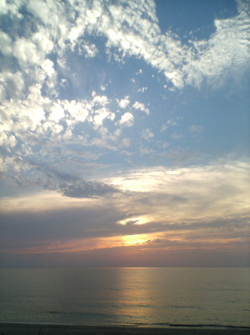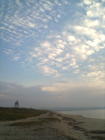 朝の通勤は朝日に向かい、帰宅時は夕日に向かって車で移動しています。残業しないと今の季節、帰宅時はちょうど刻々と日が暮れていく時刻。空に素敵な雲がかかっていると、うずうずもぞもぞしてしまいます。今日も素敵な雲が掛かっていたので、家の付近で少しコースを変更し、ひとり海へ向かいました。