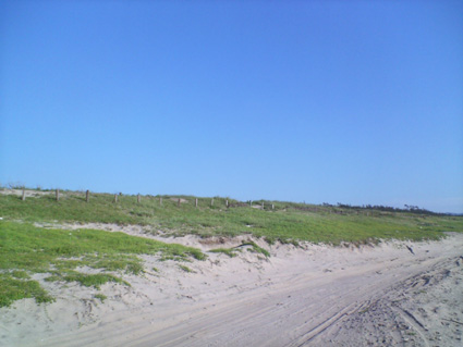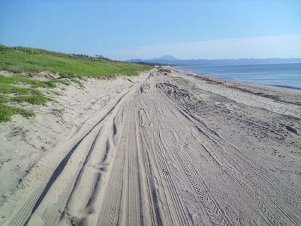左手の緑は砂浜で育つ強い植物たち。中には「はまぼうふう」と呼ばれる食用のものも生えます。(これに関しては採取は禁止されているのですが)