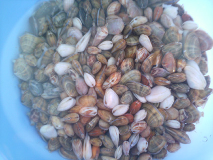 ただ、「波の子」といわれるだけあって、とった、と思った瞬間にもその貝は波に浚われていくのです。波が来ないと足は砂にもぐりこめないし、深いところまで追うにしてもすぐに次の波が来て移動させるしで、なかなか、これは、楽しい攻防だったりします。