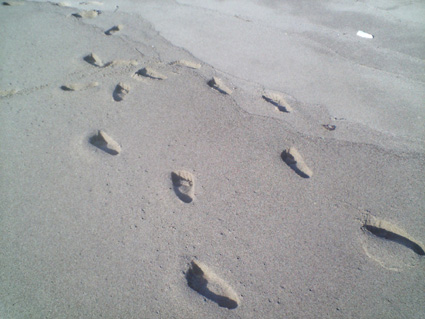 この写真、足跡の形で凹んでいるのが正解なのですが(勿論ですか、そうですか……)、ワタシは最初、足跡の形で出っ張っているように見えました。