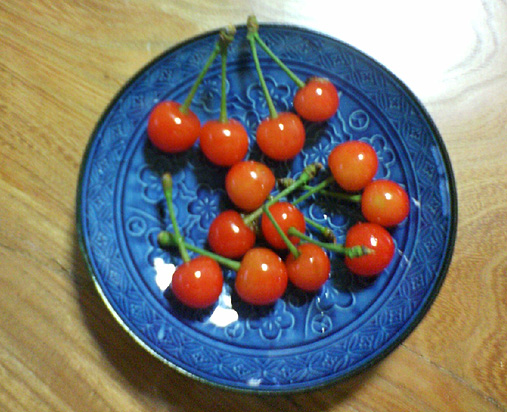 写真は今日のいちごと今日のさくらんぼ。毎日これくらい(ざるにいっぱい)のいちごが収穫されてきます。おなかいっぱいになるまでいちごです。農業の素人(両親ですが)が作っているので色も形も様々ですが、無農薬。美味。仕事をする傍ら、買うことが殆ど無いくらいの数々の野菜に加えてこうして季節ごとの果物も育てている、その努力は尊敬です。自分にはとてもまねできないと思います。